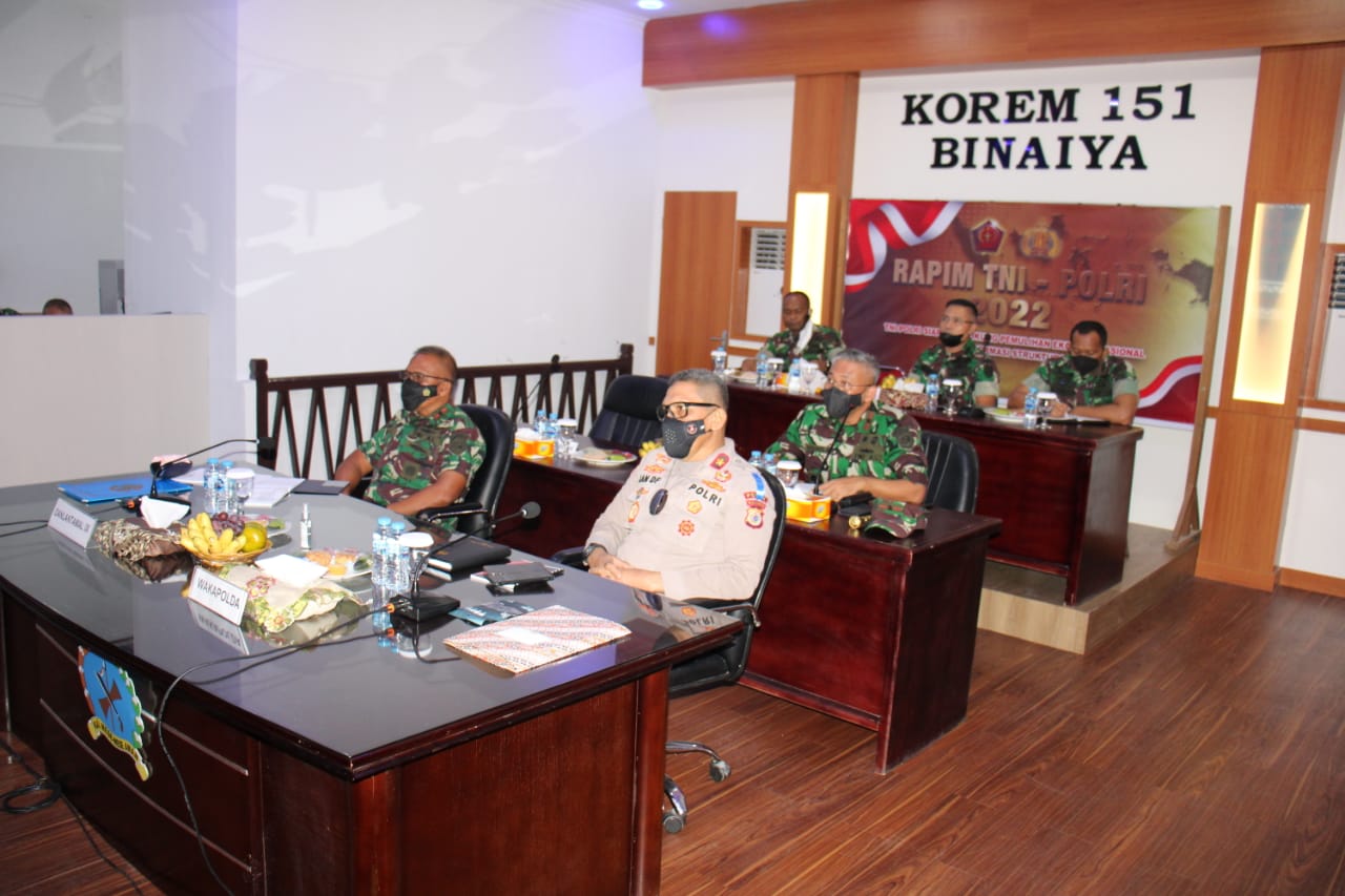 Malukuexpress.con,– Wakil Kepala Kepolisian Daerah Maluku Brigjen Pol Jan de Fretes, menghadiri Rapat Pimpinan (Rapim) TNI Polri melalui virtual zoom dari Markas Korem 151/Binaiya, Kota Ambon, Selasa (1/3/2022).