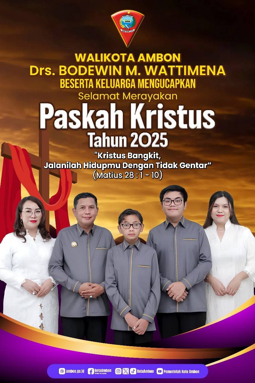 Walikota Ambon Mengucapkan Selamat Paskah Tahun 2025 adminApril 20, 2025Juli 13, 2025219 Dilihat Post Views: 219 Pos terkaitPengurus DPD Persatuan Masyarakat Buddha Indonesia Provinsi Maluku Mengucapkan Selamat Memperingati Jumat Agung dan Merayakan Paskah Kristus Tahun 2026Steven Izaac Risakotta (Wakil Sekretaris Electoral 2) Mengucapkan Dirgahayu AMGPM Ke 93 Tahun, 27 Maret 2026Steven Izaac Risakotta (Ketua PP AMPG, Ketua DPP Bapera dan Waketum DPP AMPI) Mengucapkan Dirgahayu AMGPM Ke 93 Tahun, 27 Maret 2026Kasatker PJN Wilayah II Provinsi Maluku Ir. TOCE LEUWOL, ST.,MT Mengucapkan Selamat Idul Fitri 1 Syawal 1447 Hijriah/ Tahun 2026 MasehiDLHP Kota Ambon Mengucapkan Selamat Idul Fitri 1 Syawal 1447 Hijriah Tahun 2026Dr. Michael Wattimena, S.E, S.H., MM Komisaris PT Pertamina International Shipping dan Tenaga Ahli Menteri ESDM RI Mengucapkan Selamat Idul Fitri 1 Syawal 1447 Hijriah/2026 M