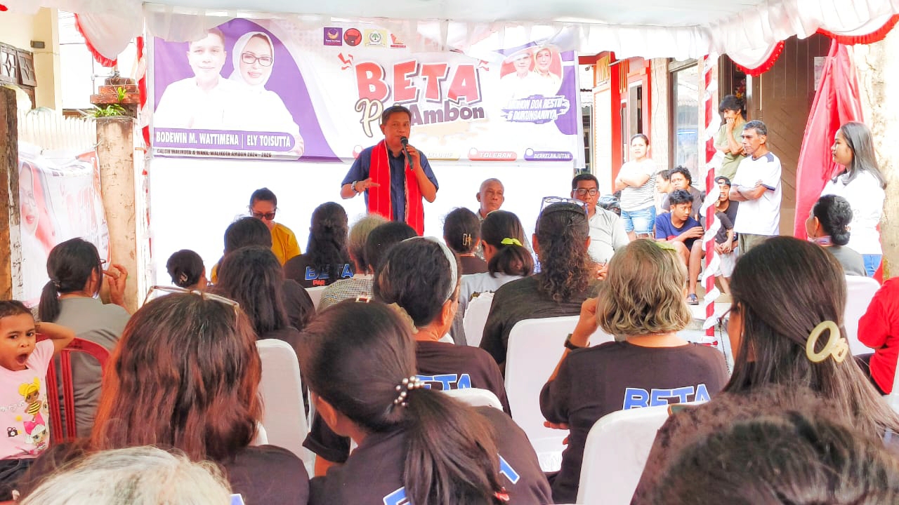 Soalisasi pemenangan Bodewin Wattimena dan Elly Toisuta dengan jargon BETA Par Ambon ini, Berlangsung di kawasan Pulo Gangsa Kelurahan Uritetu, Kecamatan Sirimau, Yang dihadiri puluhan warga setempat.