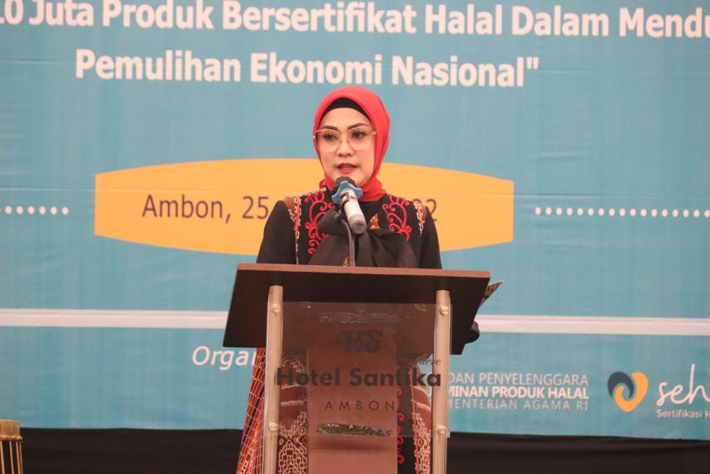 Ketua Dekranasda Provinsi Maluku, Widya Pratiwi Murad dalam sambutannya mengatakan, kegiatan ini merupakan salah satu agenda strategi yang bertujuan untuk melaksanakan percepatan layanan sertifikasi halal dan bersinergi dengan pemerintah daerah.