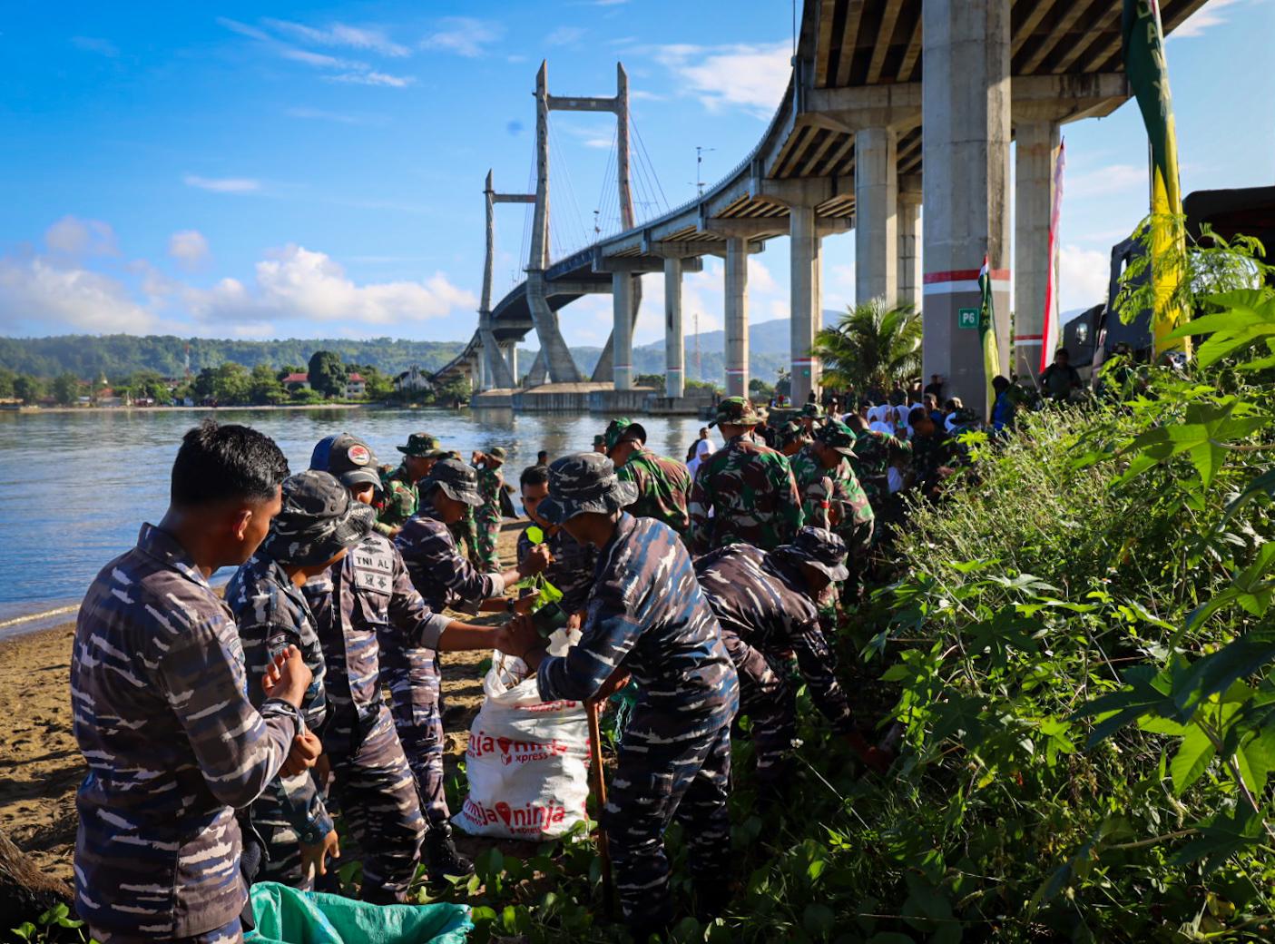 MALUKUEXPRESS.COM, TNI Angkatan Laut. Pangkalan Utama TNI Angkatan Laut (Lantamal) IX Ambon. Brigadir Jenderal TNI (Mar) Suwandi, S.A.P., M.M., diwakili Aspotmar Danlantamal IX Letkol Laut (PM) Dodi S.H., M.H., menghadiri karya bhakti bersih pantai dalam rangka jelang HUT ke 68 Kodam XV Pattimura bertempat di Jembatan Merah Putih, Kota Ambon, Maluku. Kamis (08/05/2025)