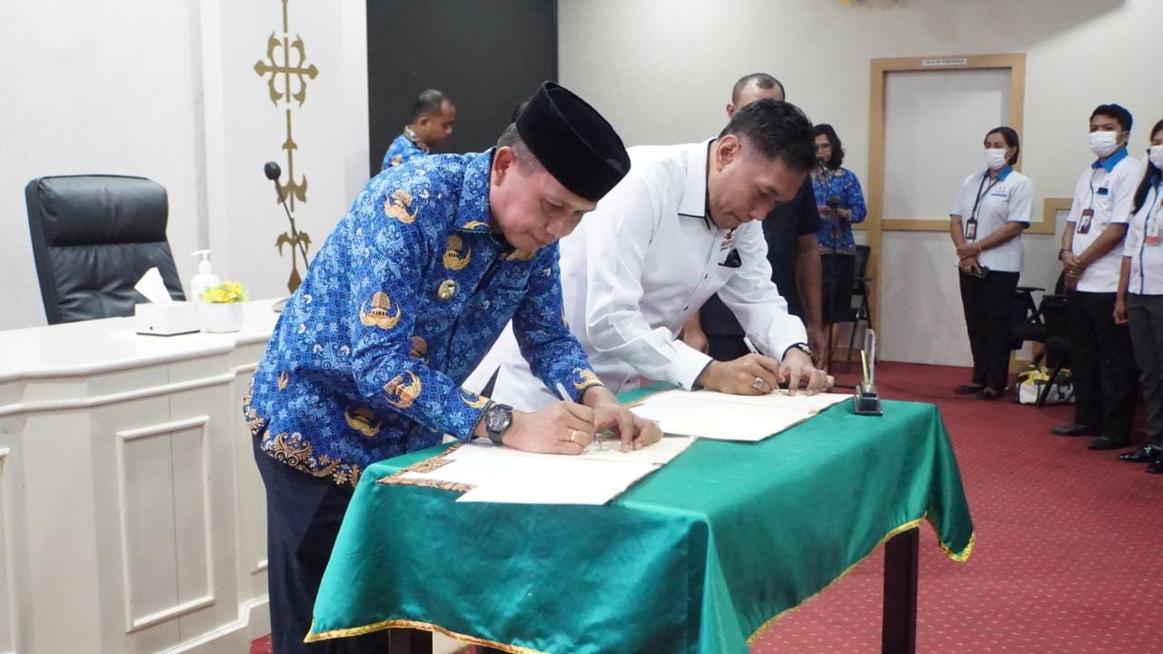 MALUKUEXPRESS.COM, Anggota Ombudsman RI, Johanes Widijantoro didampingi Kepala Perwakilan Ombudsman RI Provinsi Maluku, Hasan Slamat menandatangani Nota Kesepakatan dengan Pj. Walikota Ambon, Bodewin M. Wattimena pada Senin (22/05/2023) di Ruang Rapat Vlisingen, Balai Kota.