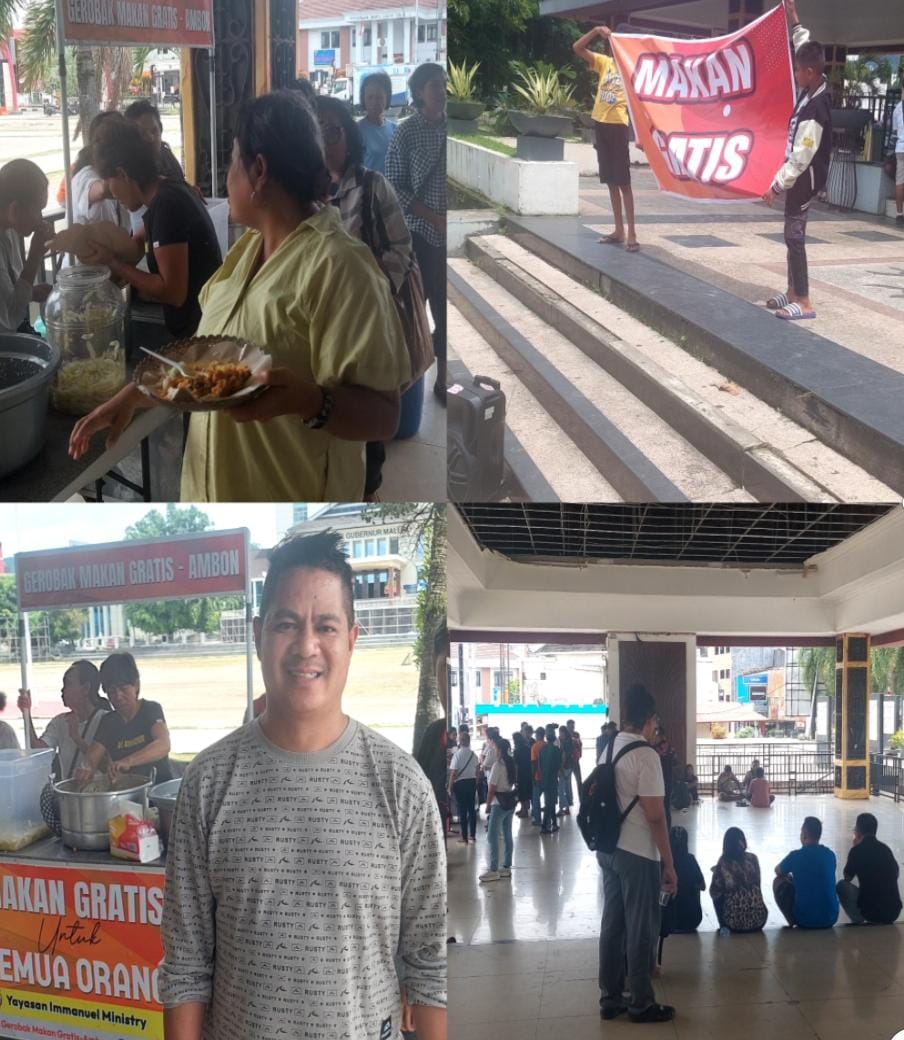 MALUKUEXPRESS.COM, Yayasan Immanuel Ministry Bersama Sekolah Tinggi Teologia (STT) Kerusso Bekasi melaksanakan kegiatan Gerobak Makan Gratis, yang semua orang bisa datang makan gratis tanpa dipungut biaya. Kegiatan yang dilakukan di Tribun Lapangan Merdeka Kota Ambon, Jumat 28 Februari 2025, Jam 12.00 WIT-selesai mendapatkan antusias yang sangat luar biasa dari warga Kota Ambon